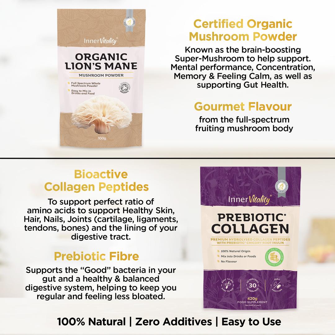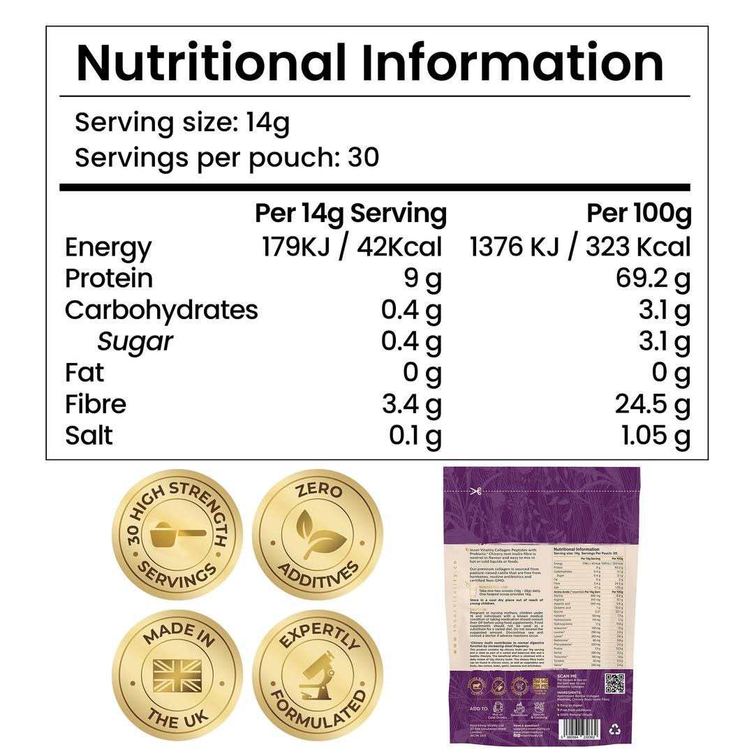 Our premium Prebiotic Collagen formula provides the full benefits of scientifically backed Collagen Peptides with the enhanced digestive support of Prebiotic inulin to support a healthy & balanced digestive system.