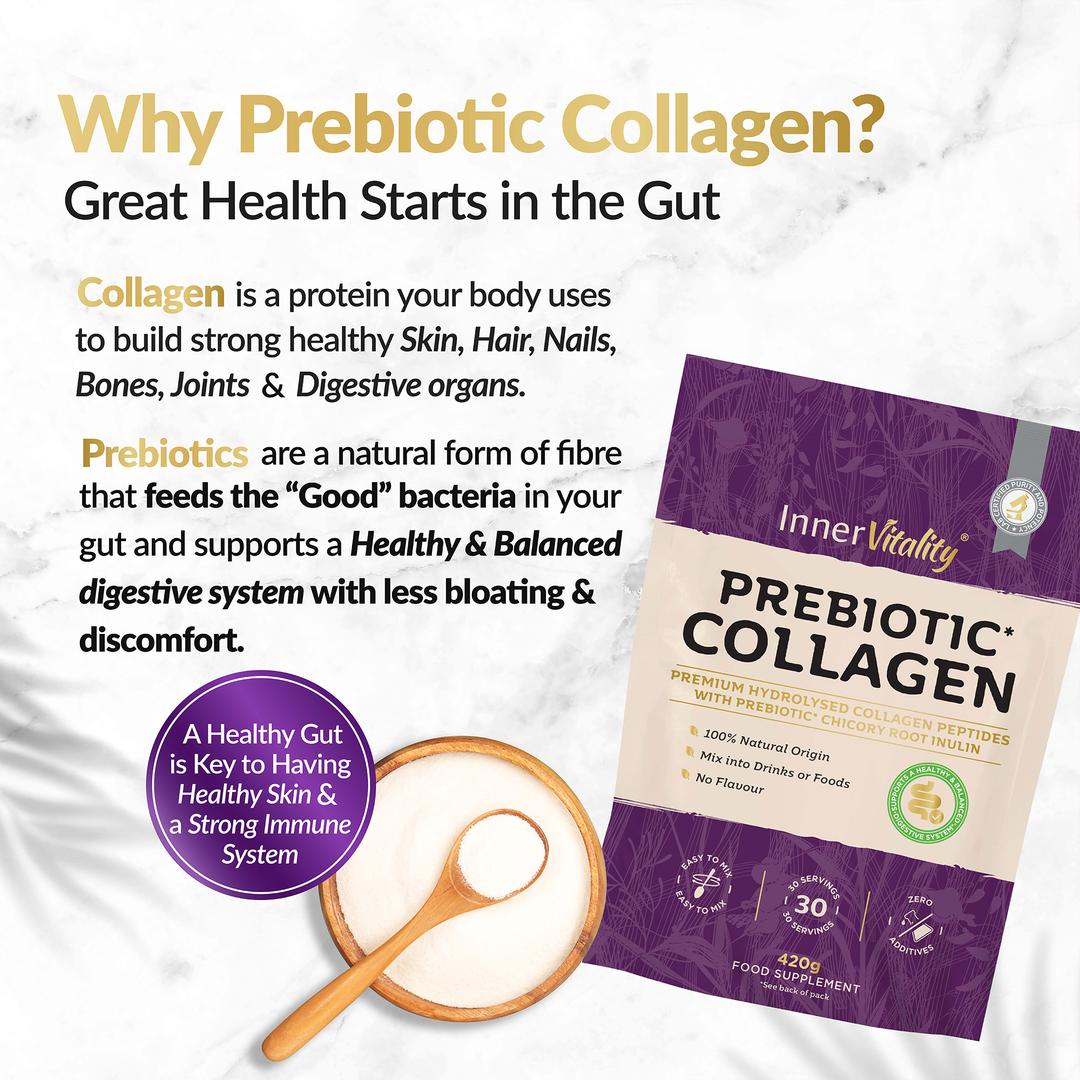 Prebiotic's are a natural form of dietary fibre that feeds the “Good” bacteria in your gut and supports a healthy and balanced digestive system, helping to keep you regular and feeling less bloated.