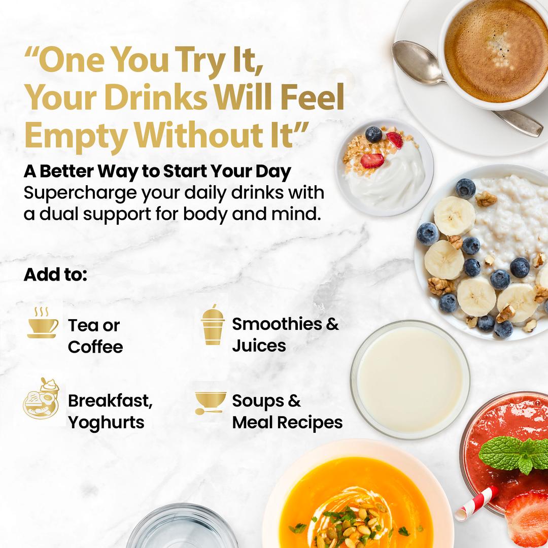 Collagen is often referred to as the glue that holds us together. This is due to the unique ratios of 18 amino acids it contains with high levels of Glycine, Proline and Lysine to nourish your skin and connective tissues.